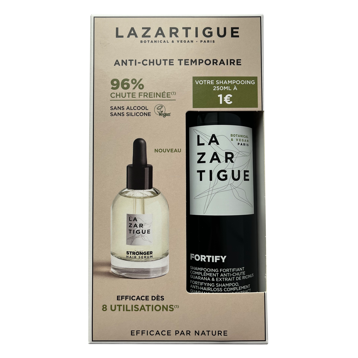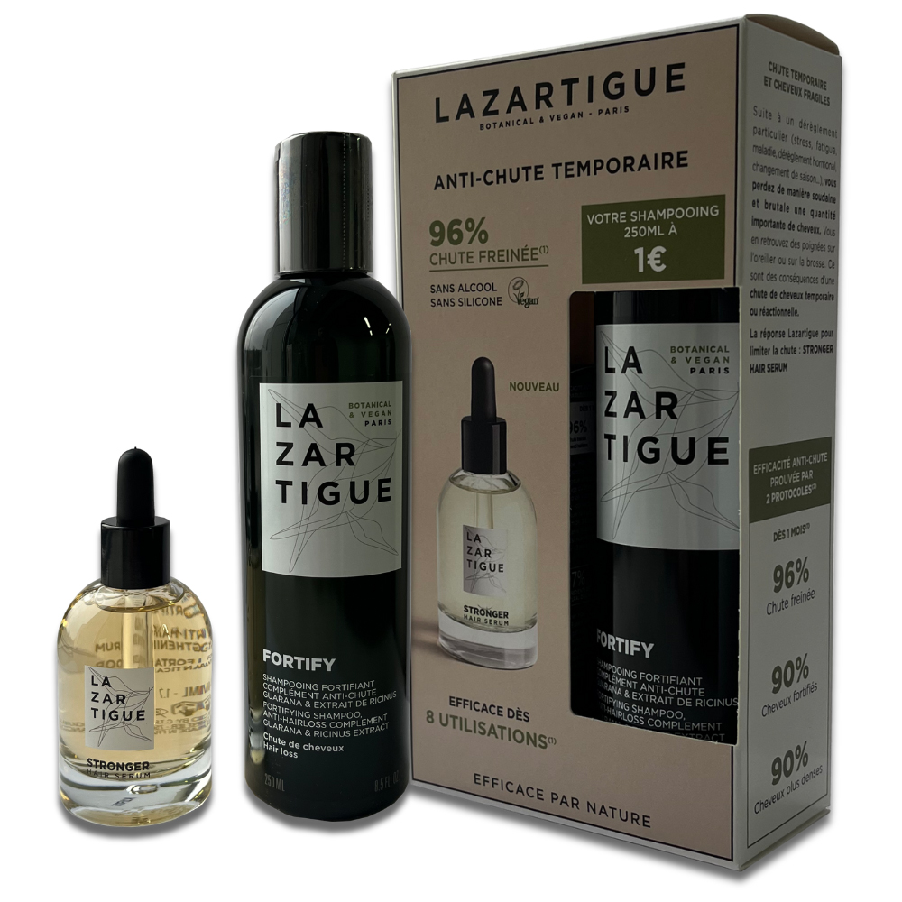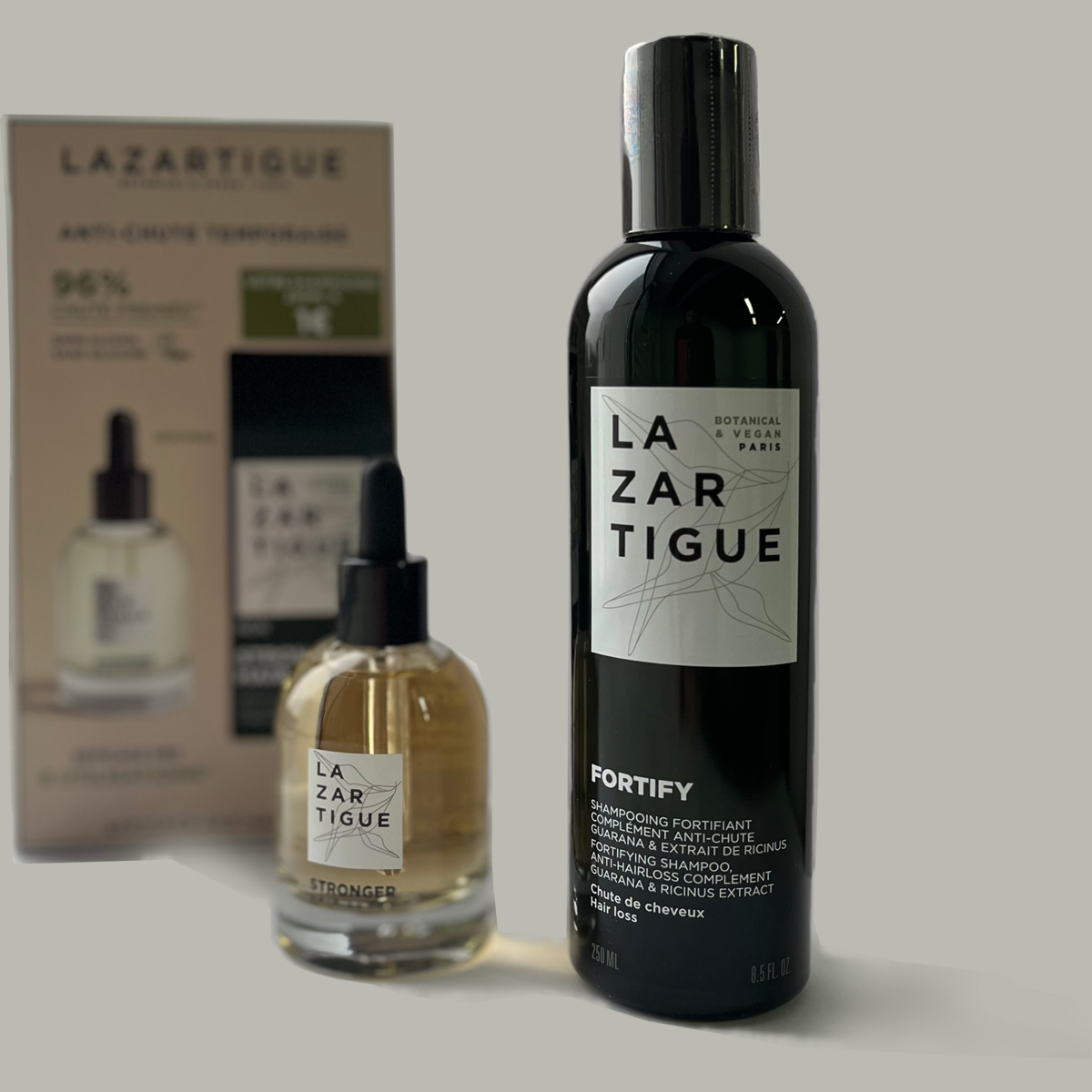 FORTIFY Укрепляющий шампунь против выпадения волос: вода, натрия лауроил глутамат, децилглюкозид, натрия метилкокоилтаурат, натрия кокоамфоацетат, диглицерид, лимонная кислота, пропиленгликоль, гидроксипропил-фосфат крахмала, ароматизатор, гуаргидроксипропилтримония хлорид, акрилаты/с10-30 сополимер акрилакрилата, натрия бензоат, камедь ксантановая, этилгексилглицерин, ментил-рса (пирролидонкарбоновая кислота), масло из семян клещивины обыкновенной (касторовое) (ricinus communis), глицерин, ментол, лимонен, натрия гидроксид, дипропиленгликоль, экстракт семени пацллиния купана (pfullinia cupana), токоферол Укрепляющая сыворотка против выпадения волос STRONGER: вода, пропандиол, бутиленгликоль, полисорбат 20, каприлил/каприловый гликозид, пентиленгликоль, целлюлозная камедь, метилдиизопропил-пропионамид, натрия бензоат, ароматизатор, полиглицерил-3-кокоат, глицерин, полиглицерил-10 лаурат, динатрия эдта, лимонная кислота, инулин, камедь ксантановая, калия сорбат, целлюлоза, фруктоза, глюкоза, экстракт корневищ моркови (daucus carota sativa), лимонен, карамельный краситель, декстран, линалоол, ацетилтетрапептид-3, экстракт цветков клевера лугового (trifolium pratense, пальмитоил трипептид-8 |